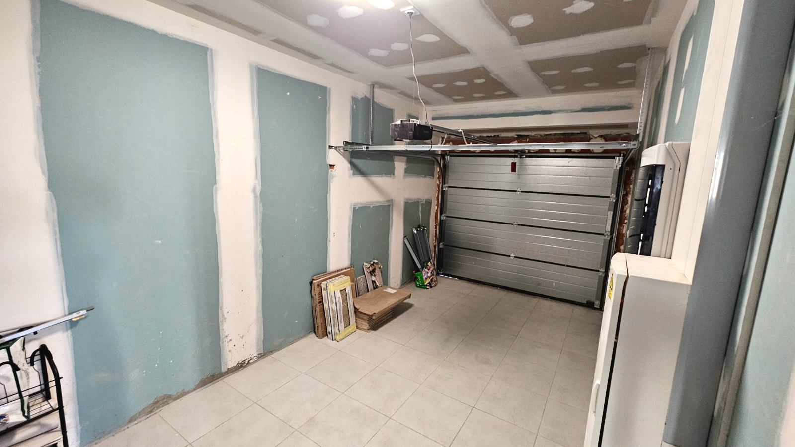 Le garage, entièrement carrelé et isolé, offre un espace supplémentaire pour stationner votre véhicule ou aménager un atelier. Deux places de stationnement privatives devant la maison complètent ce bien.