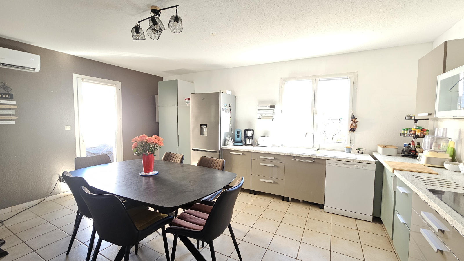 Pour votre confort, la maison dispose d’une climatisation réversible dans le séjour, vous garantissant une température agréable en toute saison. Un garage attenant permet de stationner votre véhicule en toute sécurité et d’offrir un espace de rangement supplémentaire.