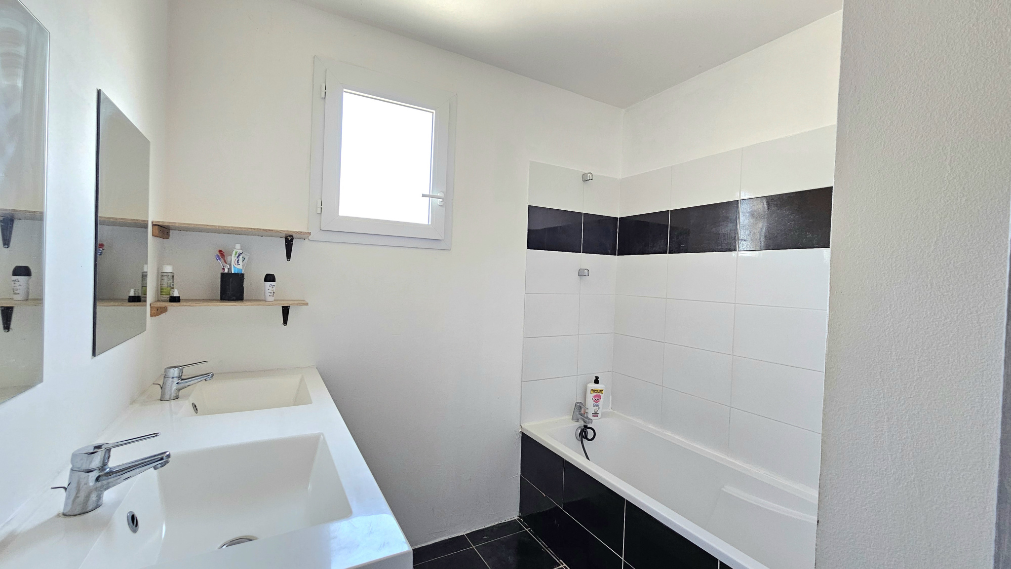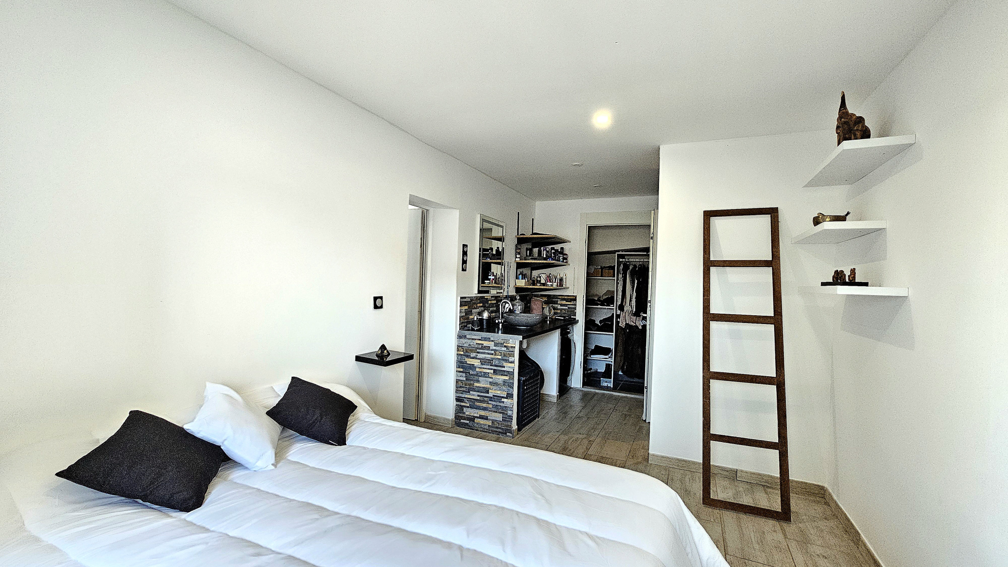 Dès l’entrée, vous serez accueilli par un vaste salon-séjour baigné de lumière, ouvert sur une cuisine américaine moderne et fonctionnelle. Cet espace de vie convivial est idéal pour partager des moments en famille ou entre amis. Le rez-de-chaussée dispose également d’une suite parentale, véritable cocon intime, comprenant une salle d’eau privative, un dressing spacieux et un accès direct à l’extérieur. Un WC indépendant complète ce niveau.