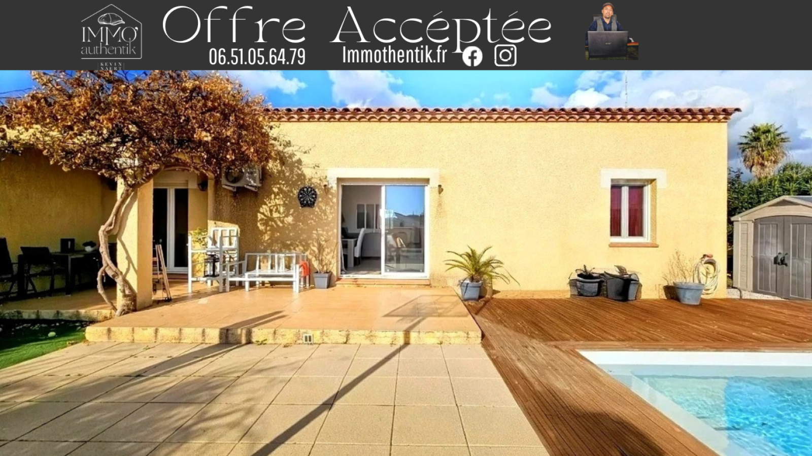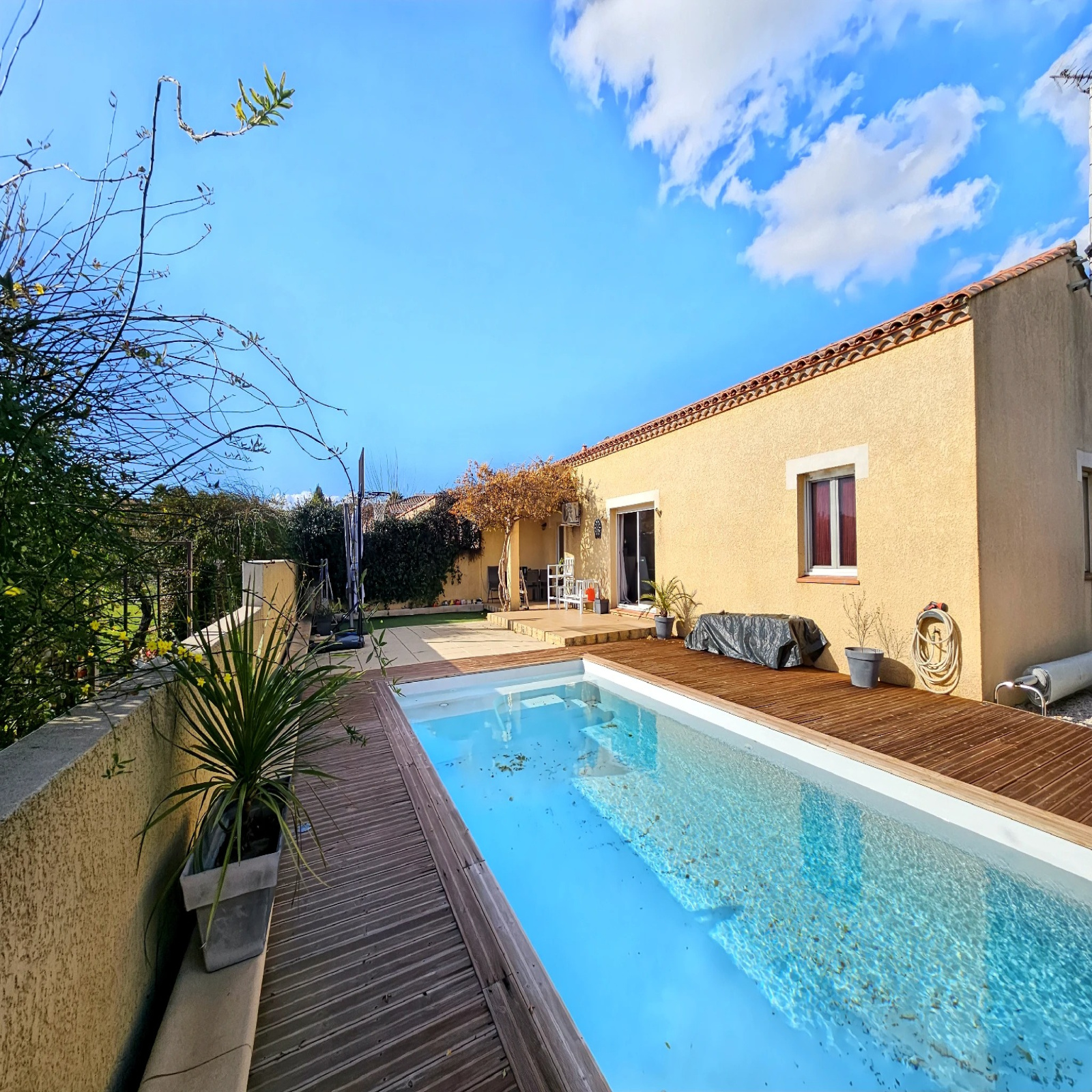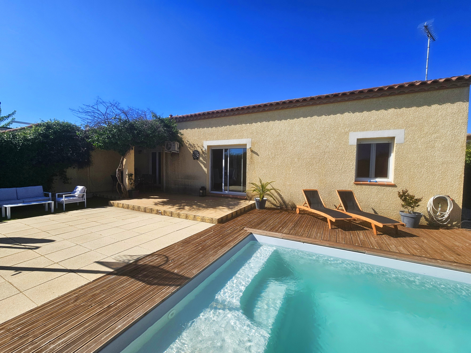 Découvrez cette magnifique maison de plain-pied située dans une impasse au calme dans le secteur prisé de Bonaval sur la commune de Béziers. Édifiée en 3 faces sur une parcelle de 405 m², cette propriété offre une surface habitable de 98 m², complétée par un garage de plus de 15 m². La maison dispose de quatre chambres spacieuses, idéales pour accueillir une famille ou de jeunes retraités. Le salon séjour, baigné de lumière grâce à son exposition sud, s'ouvre sur une cuisine moderne et entièrement équipée, créant un espace de vie convivial et chaleureux, un WC et salle de bain avec douche et baignoire complète la villa. À l'extérieur, vous serez séduit par le jardin sans entretien, agrémenté d'une superbe terrasse en bois qui entoure une piscine de 7,5 x 3,5 mètres. Un véritable havre de paix où vous pourrez profiter des belles journées ensoleillées. La maison est idéalement située à proximité de toutes les commodités : supermarché, médecin, boulangerie, ainsi que des écoles primaires et secondaires. Construite en 2007, cette maison est classée en C pour la performance énergétique, garantissant un confort optimal tout au long de l'année. Ne manquez pas l'opportunité de visiter ce petit paradis, parfait pour ceux qui recherchent tranquillité et proximité des services.